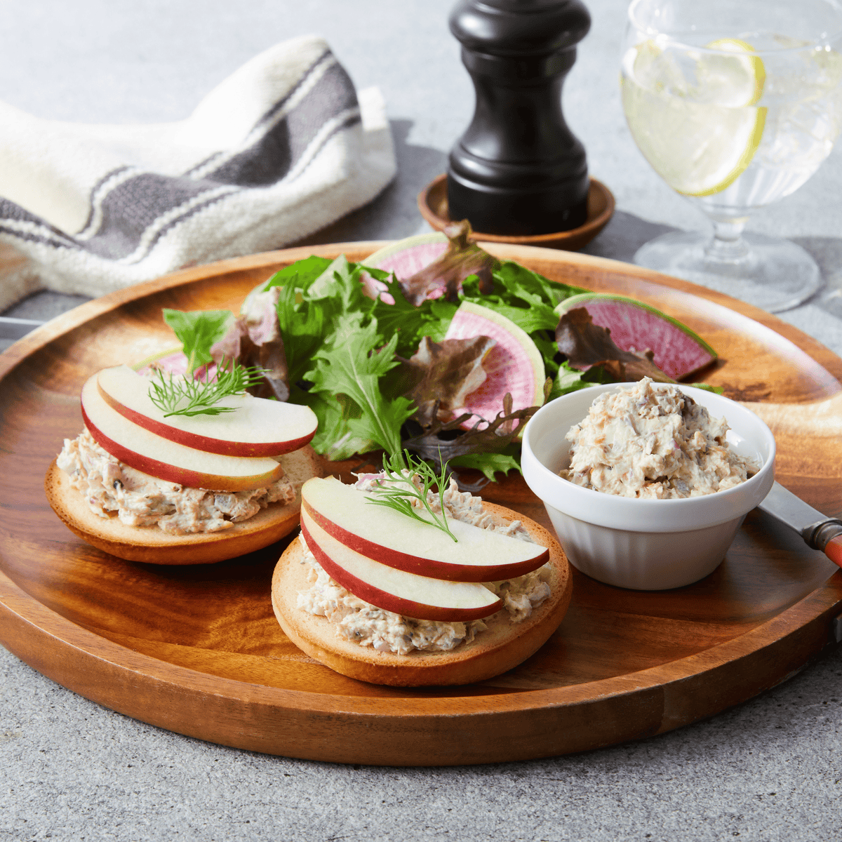 - 1に2をたっぷり塗り、りんごとディルを飾る。