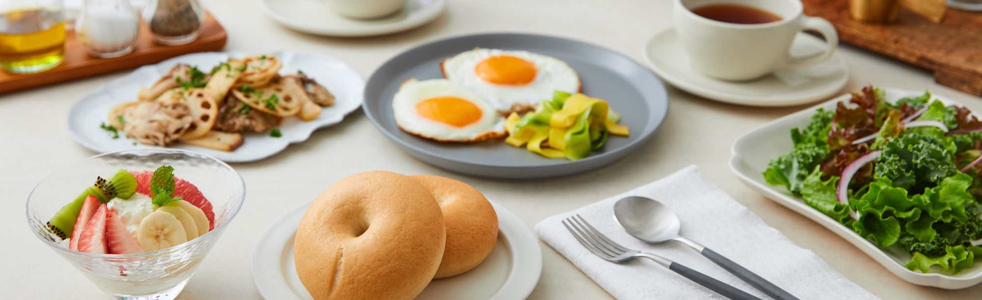 1日のはじめに口にするものは大切にしたいので、朝食はグルテンフリーのパンと決めています。電子レンジで温めればOKのベーグルは、忙しい朝にうれしい! 朝ごはんでしっかりコントロールすれば、お昼や夜は友達とのランチやディナーを思いっきり楽しめます。