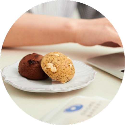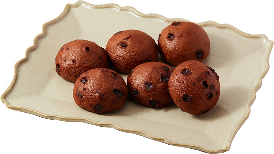 米粉生地に、風味豊かなココアパウダーと程よい甘さのチョコレートチップを混ぜ込み、焼き上げました。小さなお子様から大人まで幅広くお楽しみいただける一品です。